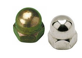 The Dome Nut is also known as an Acorn Nut or Cap Nut. The domed top protects and hides the threaded end of the screw or bolt. Dome nuts are excellent for decorative work.